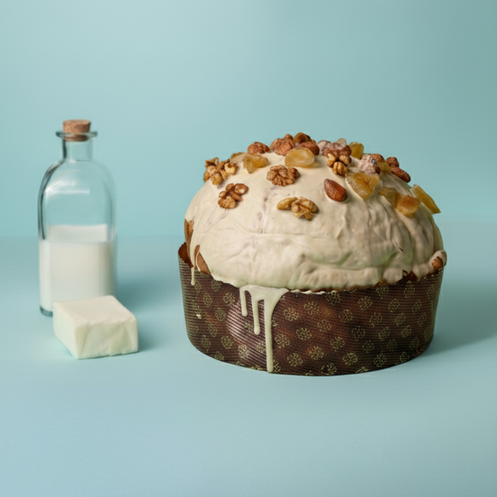 Panettone Di Bufala Fichi Noci e Mandorle Pralinate 1,2 kg.